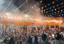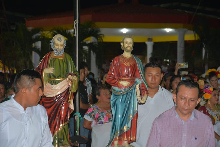 Jaraneros se reunieron en casa de la alcaldesa, Abigail Pérez Vázquez, de ahi partieron hacia el centro de la comunidad, dónde se quemó cuervos pirotécnicos con el tradicional torito, para luego llegar hacia la iglesia católica y trasladar las agrada imágenes de San Pedro y San Pablo hacia la explanada del palacio municipal, sede del evento.
