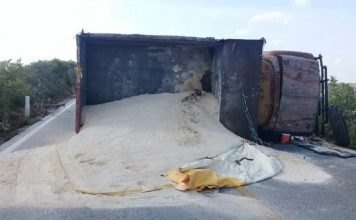 Se le poncha una llanta y riega toneladas de polvo en Chicxulub